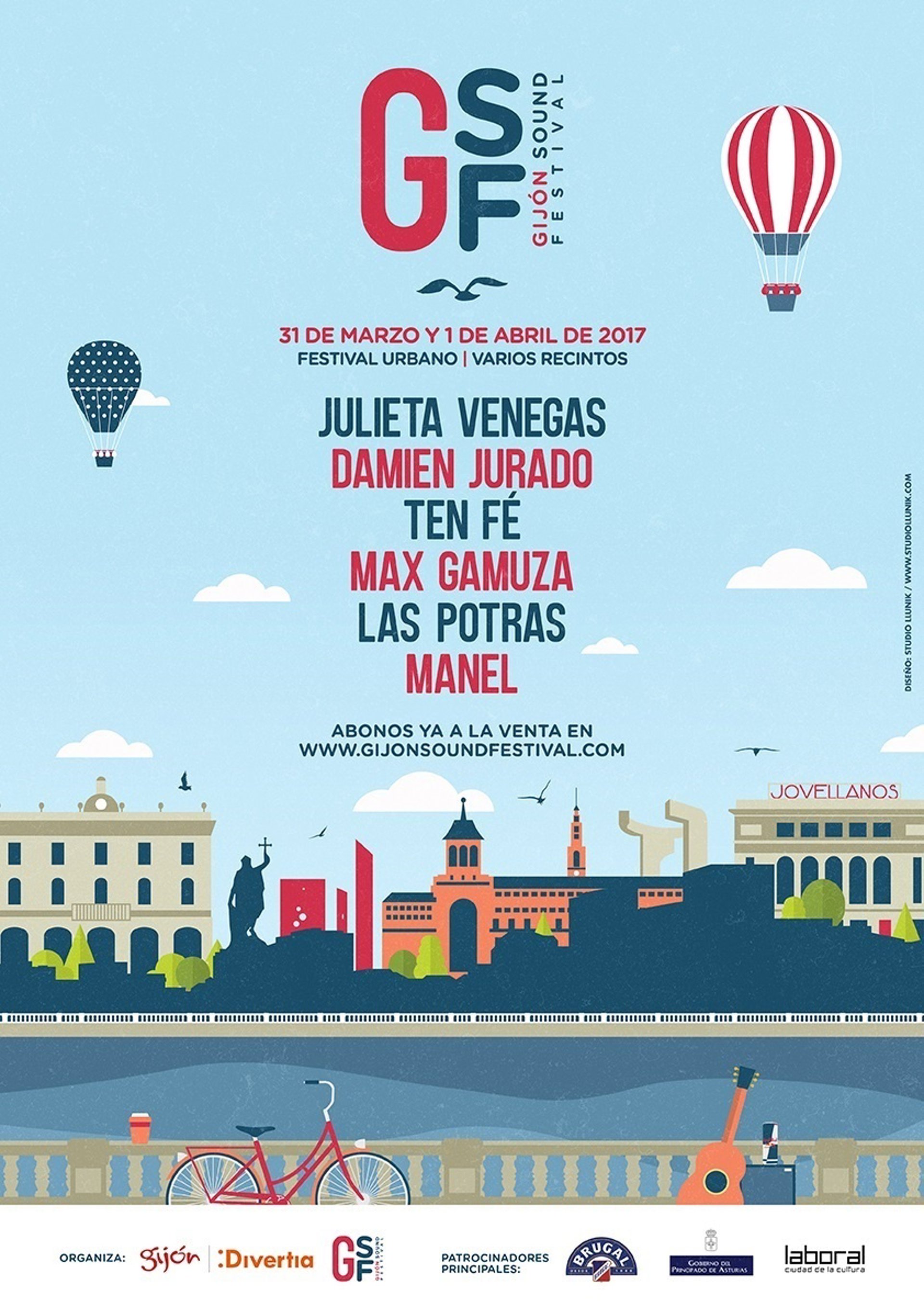 Gijón Sound Festival acaba de lanzar su quinta edición que tendrá lugar los próximos 31 de marzo y 1 de abril de 2017, con la confirmación de Julieta Venegas, Ten Fé, Damien Jurado, Manel, Las Potras y Max Gamuza como primeros artistas de su cartel.