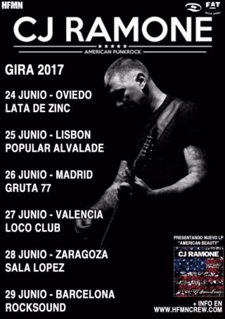 En esta ocasión CJ Ramone vendrá presentando nuevo disco, American Beauty, disponible el 17 de marzo vía Fat Wreck Chords, por lo que en los conciertos tocará su propio material, además de recuperar temas de los Ramones.