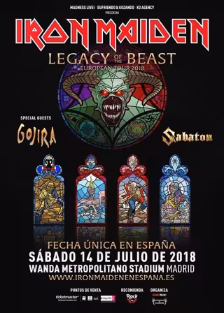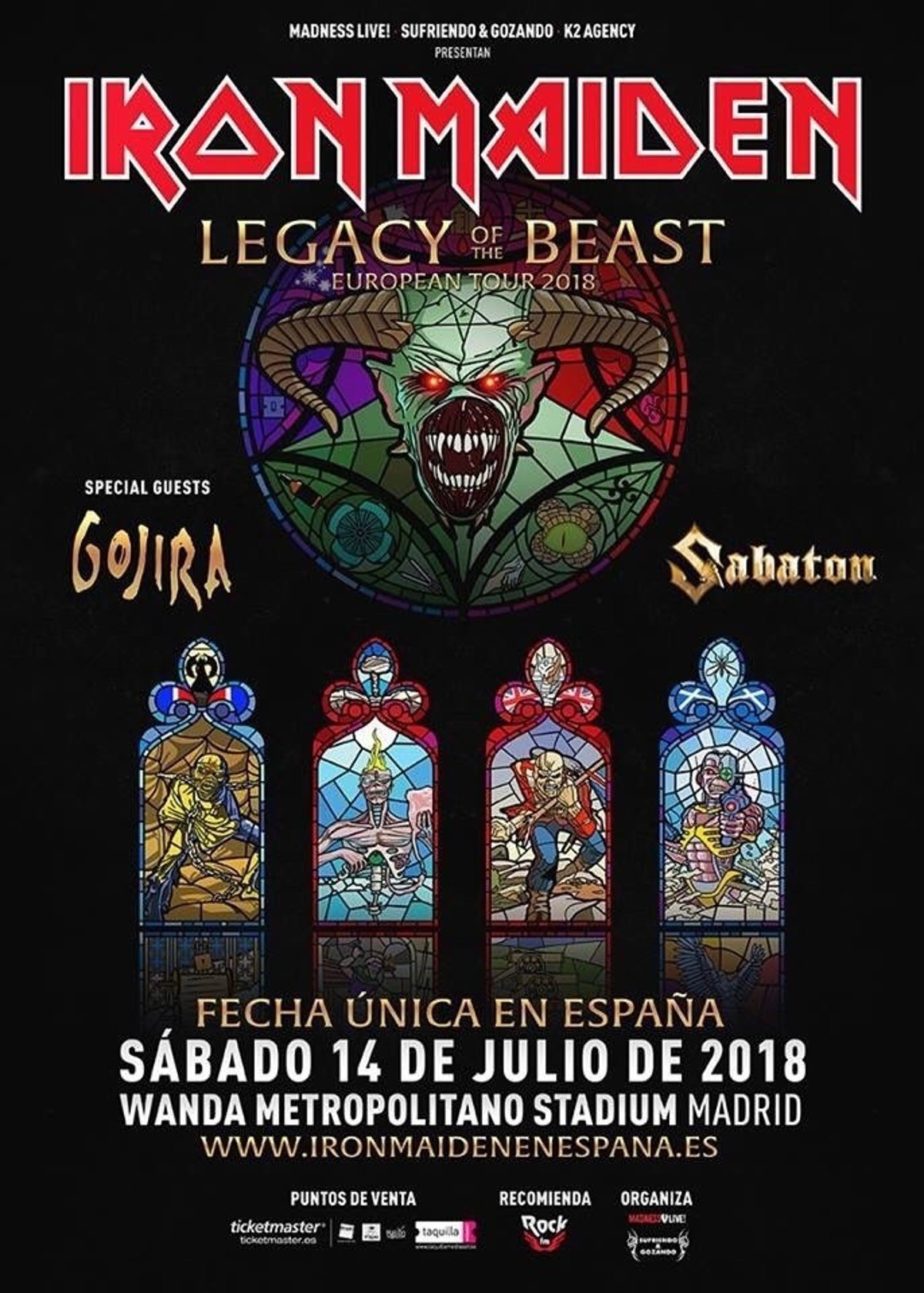 Gojira completan el cartel del concierto que Iron Maiden darán el 14 de julio de 2018 en el estadio Wanda Metropolitano de Madrid, y que contaba ya con Sabaton como el otro grupo invitado.