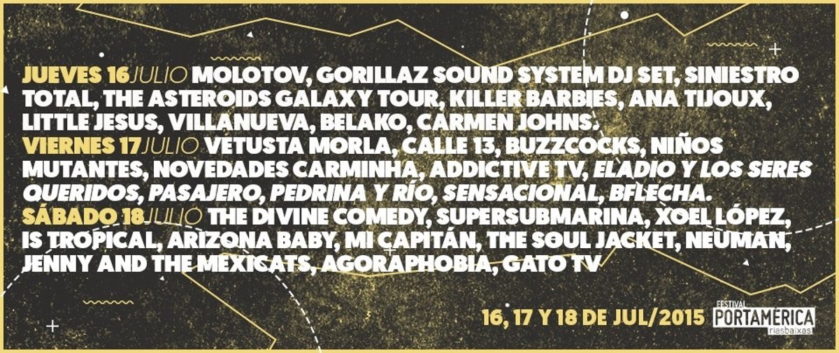 El festival PortAmérica Rías Baixas, que este 2015 celebra su cuarta edición del 16 al 18 de julio, ha anunciado los últimos grupos que cierran el cartel de la edición de este año: Gorillaz Sound System Dj Set y Vetusta Morla, además de Jenny and the Mexicats, Gato TV y Belako.