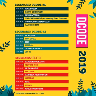 Por allí pasarán Two Door Cinema Club, Amaral, The Cardigans, EELS, Tom Odell, La Casa Azul, Caravan Palace, Viva Suecia y Miss Caffeina, entre otros muchos.