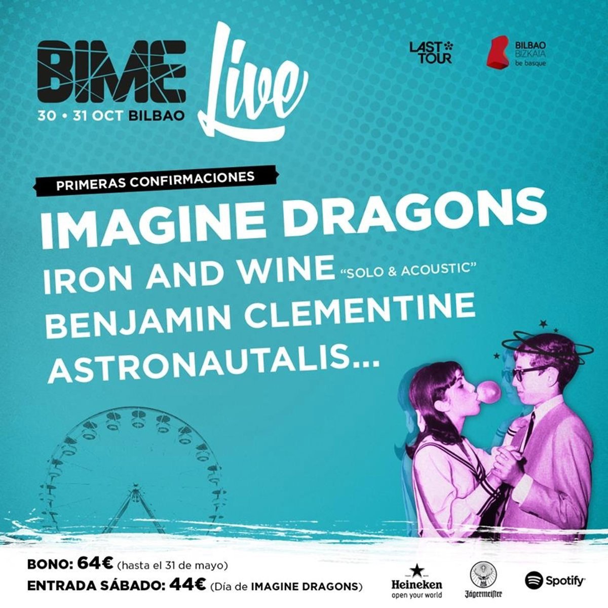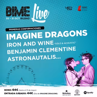 El festival BIME Live, que se celebrerá en el Bilbao Exhibition Centre (BEC) de la localidad vizcaína de Barakaldo los días 30 y 31 de octubre, ha incorporado a su cartel a Iron & Wine, Benjamine Clementine y Astronautalis, tres artistas que se suman a los ya anunciados Imagine Dragons, según ha informado Last Tour, promotora organizadora del festival.