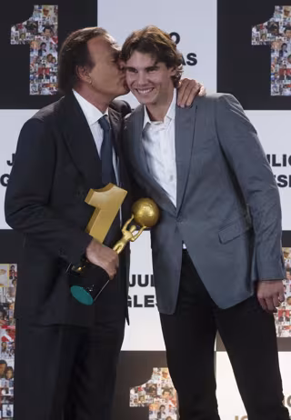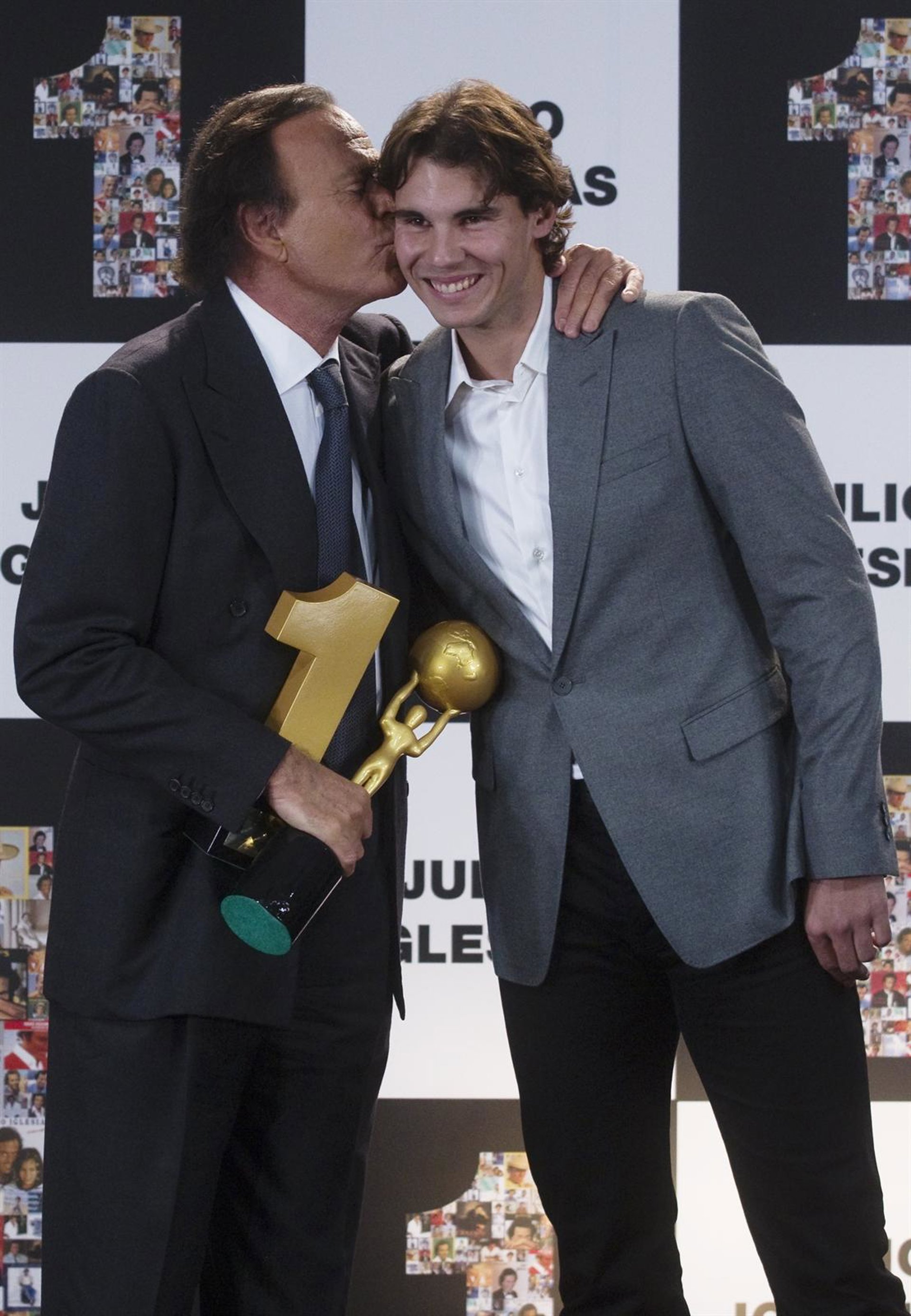 Julio Iglesias ha recibido de manos del tenista Rafael Nadal los galardones que le distinguen como el artista que más discos ha vendido en España --23 millones-- y el artista latino que más ha vendido en toda la historia, con 300 millones de unidades despachadas de sus más de ochenta trabajos publicados hasta la fecha.