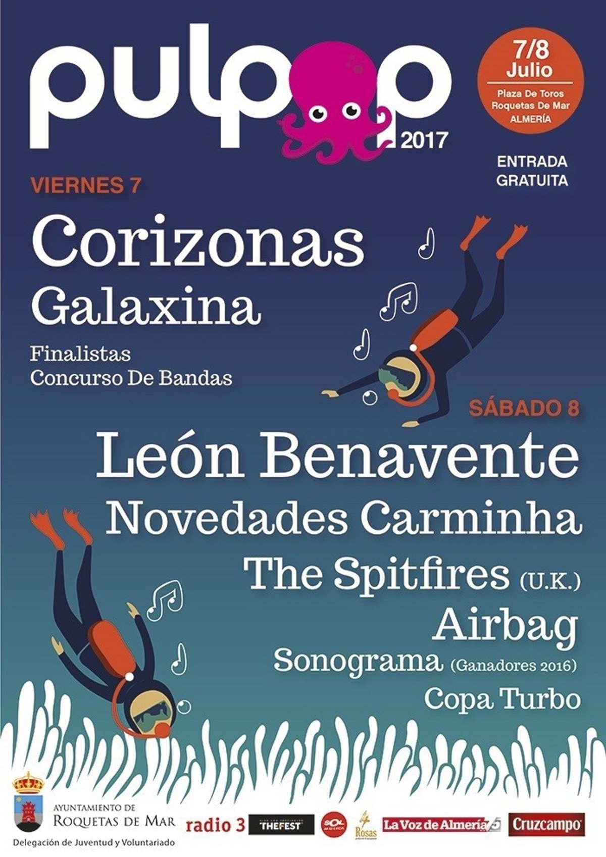 Esta miércoles se ha presentado la programación completa del Pulpop Festival 2017 en el Salón de Plenos del Ayuntamiento de Roquetas de Mar (Almería), con la participación de responsables políticos y dinamizadores culturales.