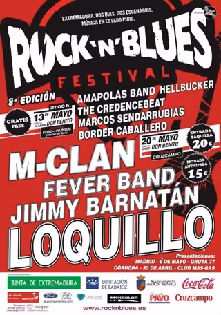 La octava edición del Rock 'N' Blues Festival tendrá lugar en Don Benito (Badajoz) en dos jornadas y dos escenarios diferentes, los días 13 y 20 de mayo de este 2017.