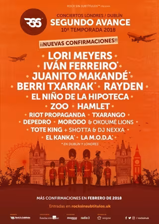 Además, harán doblete en dos ciudades Berri Txarrak (Dublín y Londres, 18 y 19 de mayo), Iván Ferreiro (Londres y Dublín, 27 y 28 de abril) y Juanito Makandé (Dublín y Londres, 19 y 20 de octubre). Toda la información y las entradas están en www.rocksinsubtitulos.uk.
