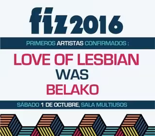 Love of Lesbian, WAS y Belako son los primeros confirmados para la edición 2016 del Festival Independiente de Zaragoza (FIZ), que se celebrará el sábado 1 de octubre en el Escenario Ambar de la Sala Multiusos.