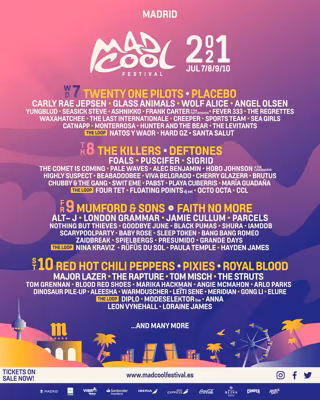 El Mad Cool Festival anuncia este miércoles gran parte de su cartel -en torno al 70 por ciento- para la edición de 2021, que se celebrará durante cuatro días del 7 al 10 de julio.