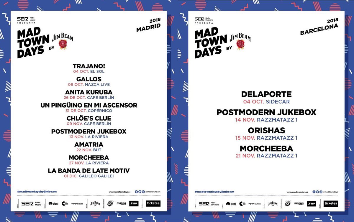 Tras su reciente primera edición del primer semestre de 2018, en otoño regresa Madtown Days by Jim Beam con 13 conciertos en Madrid y Barcelona, configurando su propuesta más amplia hasta la fecha.