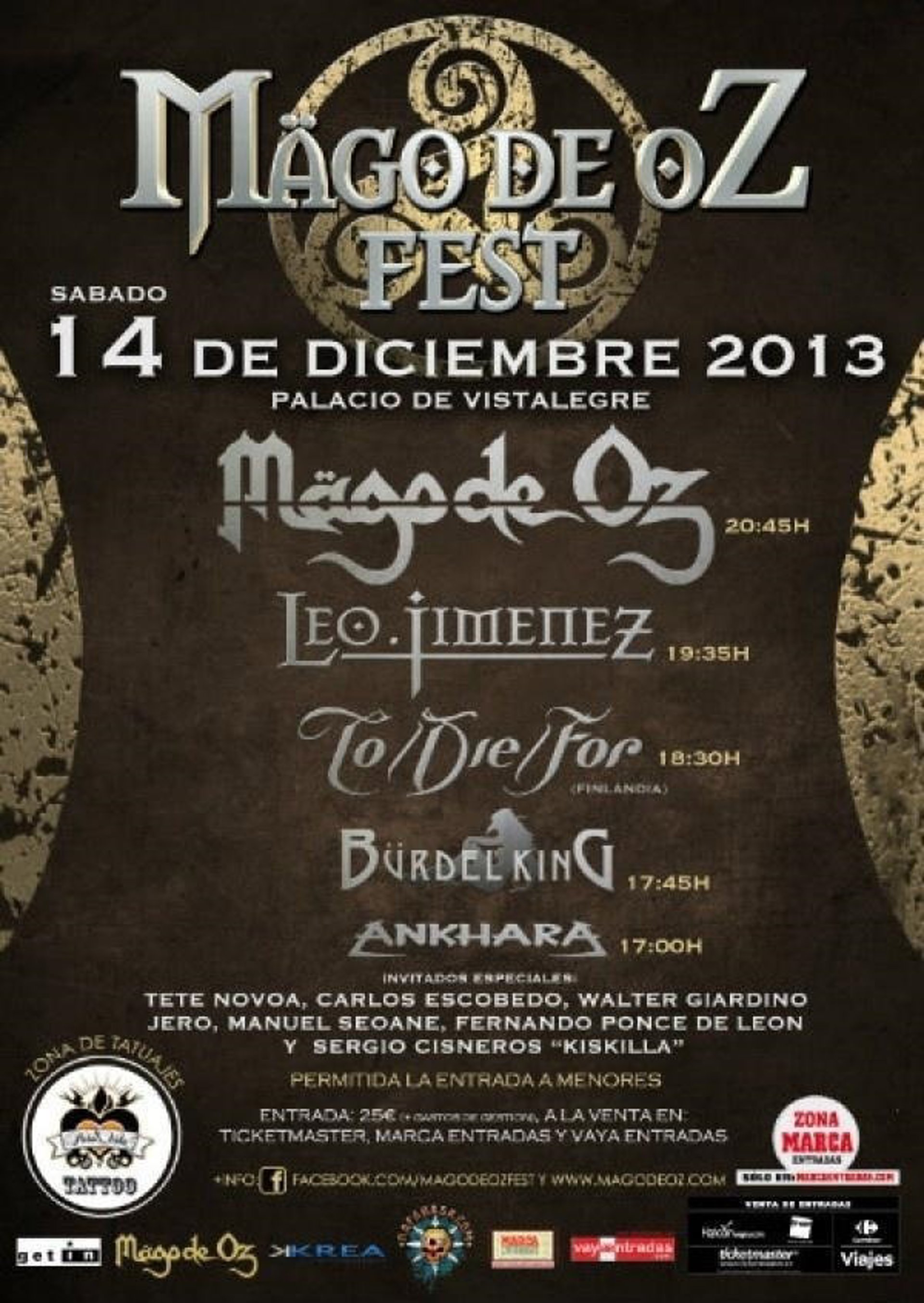 Aparte de Mägo de Oz (presentando su más reciente disco, 'Hechizos, pócimas y brujería', actuarán Leo Jiménez, To Die For, Bürdel King y Ankhara. Como invitados especiales estarán Carlos Escobedo (Sôber), Walter Giardino, Tete Novoa, Jero, Manuel Seoane, Fernando Ponce de León y Sergio Cisneros 'Kiskilla'.