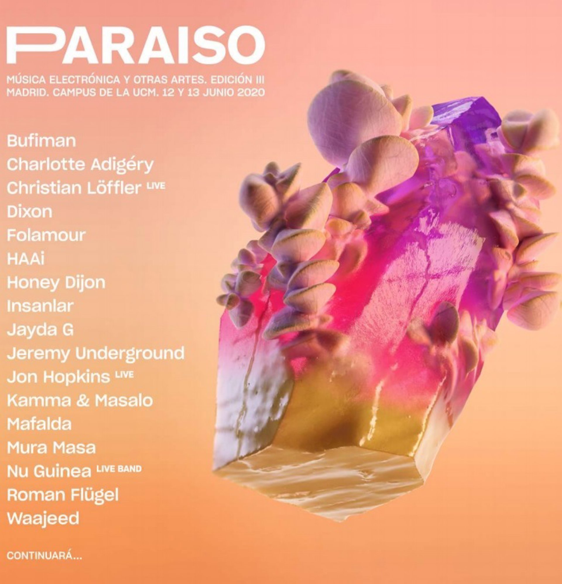 Paraíso regresa los días 12 y 13 de junio de 2020 al Campus de la Universidad Complutense de Madrid y empieza a desvelar su cartel con un avance de los primeros 17 artistas internacionales, que conforman el punto de partida de su tercera edición.