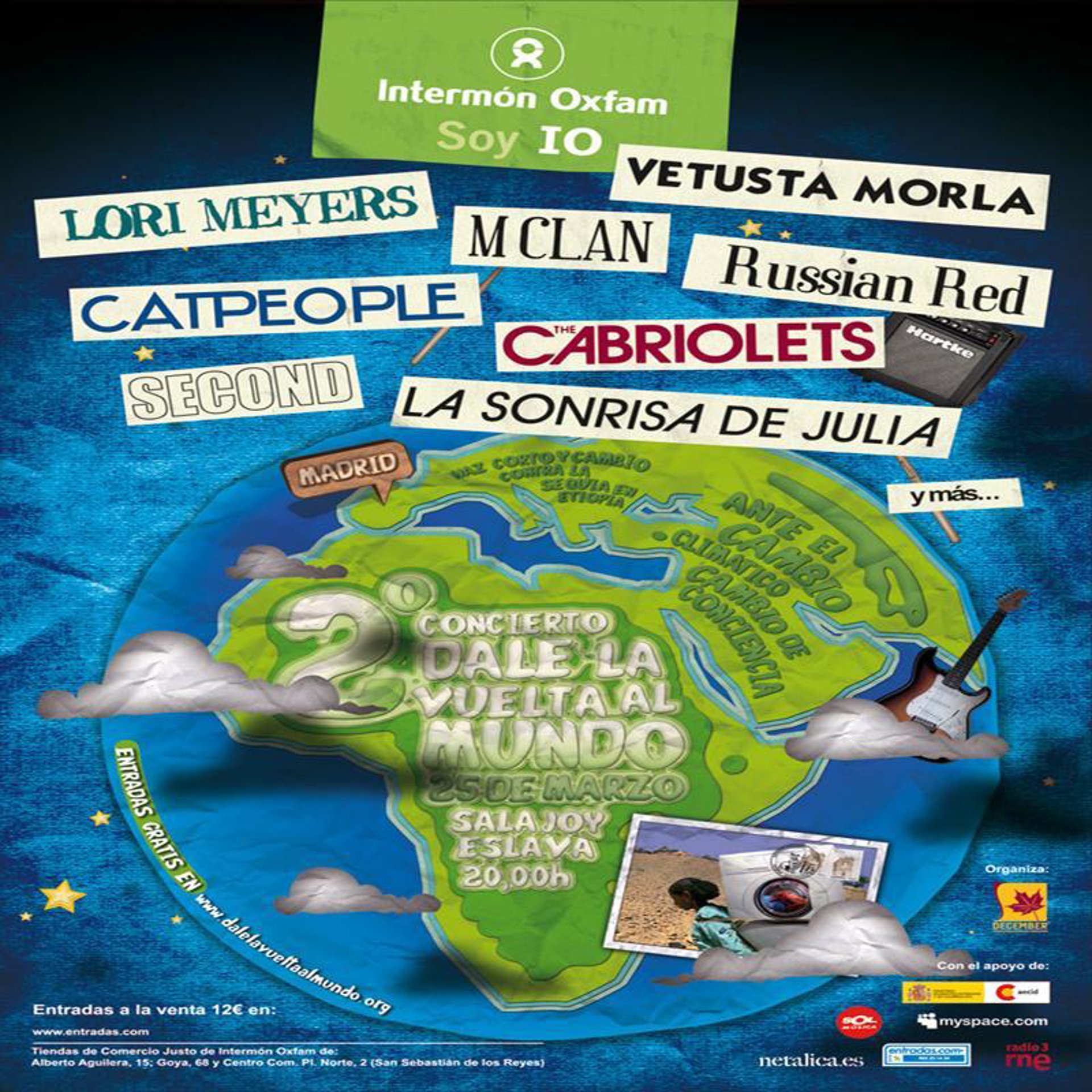 M-Clan, Vetusta Morla, Russian Red, Lori Meyers, CatPeople, The Cabriolets, La Sonrisa de Julia, Second y No More Dolls cantarán contra el cambio climático el 25 de marzo en la Sala Joy Eslava de Madrid. Una iniciativa que se enmarca dentro de la campaña '¿Quién se está cargando el clima?' de Intermón Oxfam.