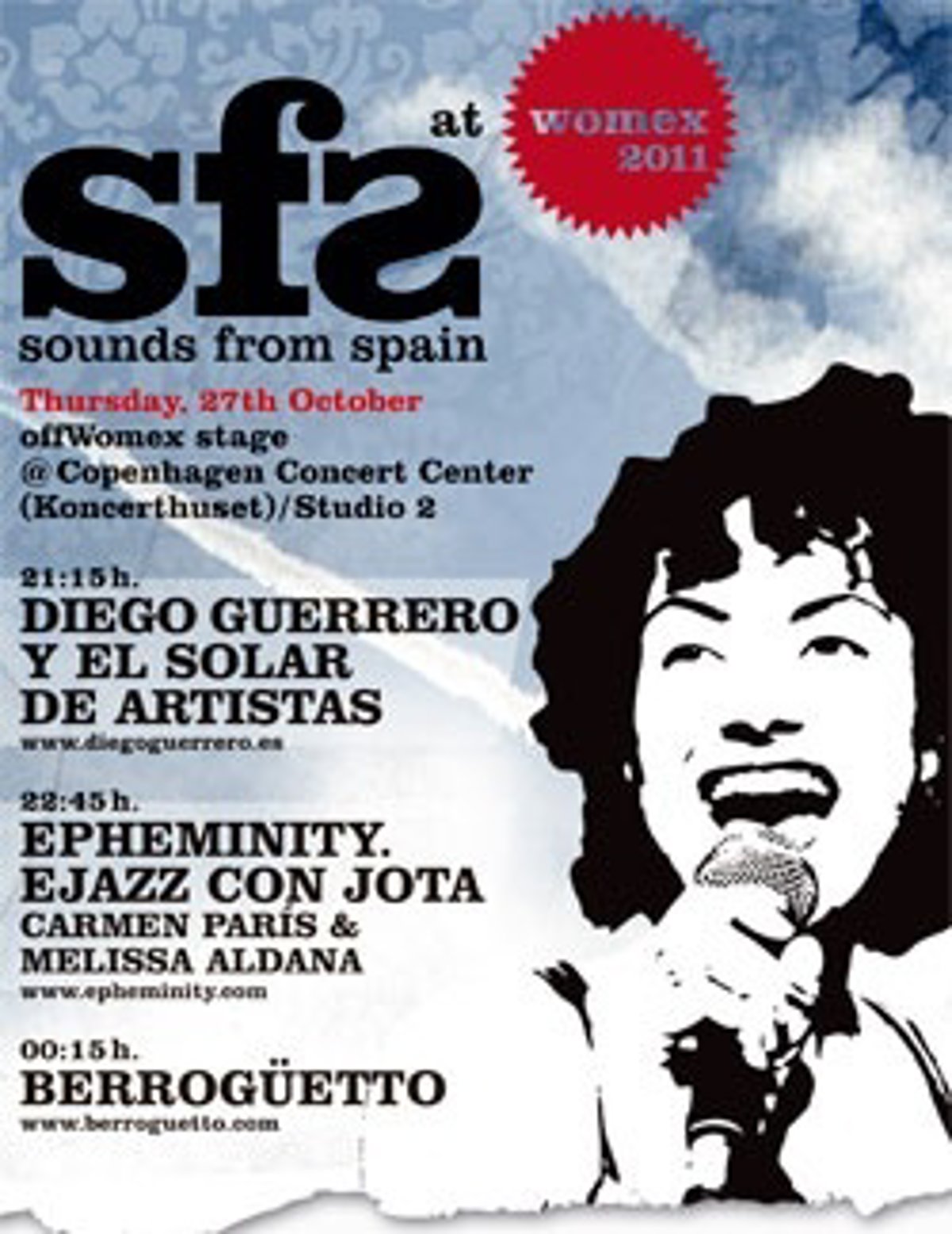 La plataforma Sounds from Spain acude a la XVII edición de la feria de músicas del mundo, WOMEX, que se celebra del 26 al 30 de octubre en Copenhague (Dinamarca). Allí presentará en concierto a Diego Guerrero & el Solar de Artistas, el proyecto Epheminity Ejazz con Jota de Carmen París & Melissa Aldana, y a Berrogüetto, el 27 octubre en el escenario offWomex (Studio 2) del Copenhagen Concert Center.