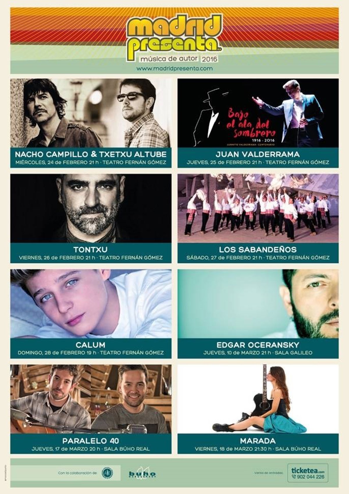 Aparte de estos recitales, el ciclo incluye citas con Edgar Oceransky (10 de marzo en Galileo Galilei), Paralelo 40 (17 de marzo en la sala El Búho Real) y Marada (18 de marzo también en Búho Real).
