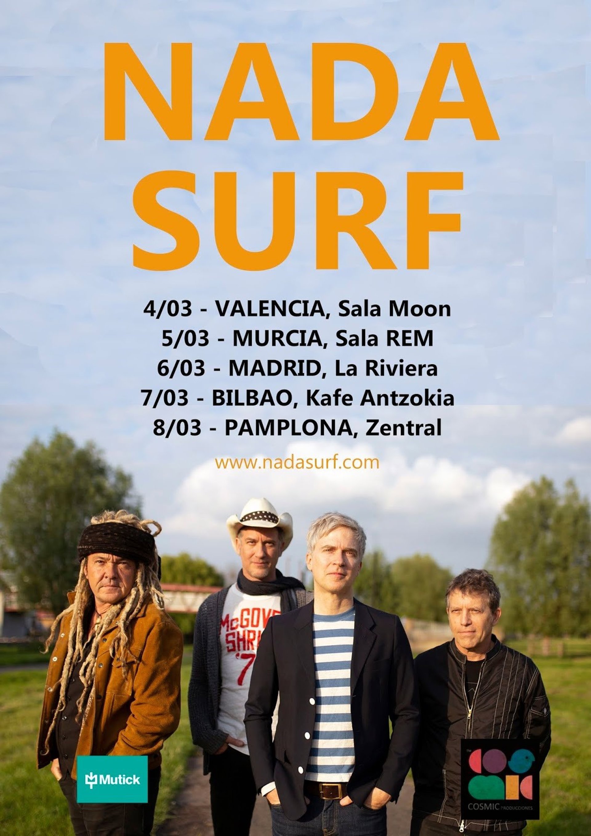 Concretamente, las citas serán en Valencia (4 de marzo, Sala Moon), Murcia (Sala Rem, 5 de marzo), Madrid (6 de marzo, La Riviera), Bilbao (7 de marzo, Kafe Antzokia) y Pamplona (8 de marzo, Zentral). Información en www.nadasurf.com.