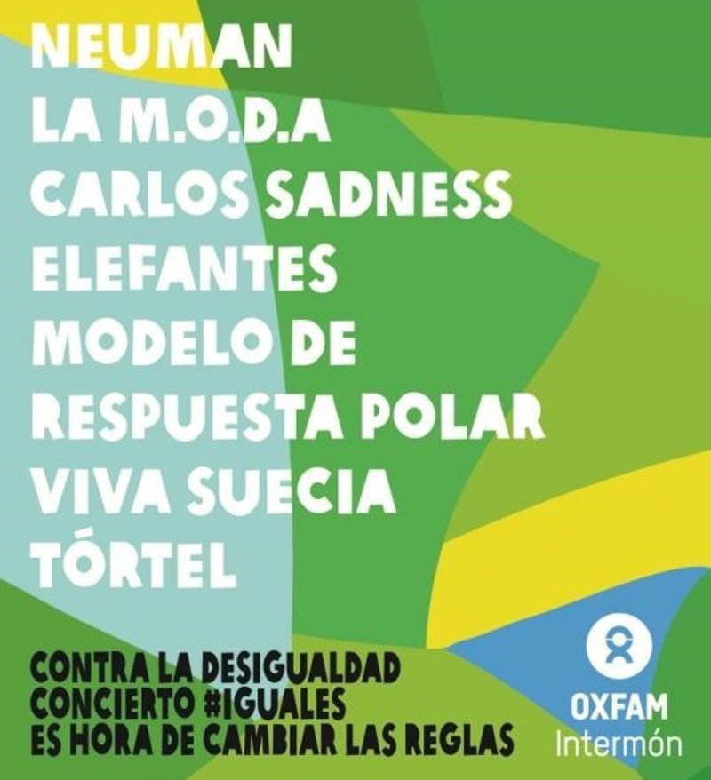 Neuman, La M.O.D.A, Carlos Sadness, Elefantes, Viva Suecia, Modelo de Respuesta Polar y Tórtel pondrán voz al concierto #IGUALES, organizado por Oxfam Intermón el próximo 3 de junio en el Teatro Barceló de Madrid.