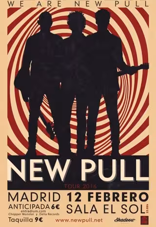 New Pull lo forman tres músicos con una larga trayectoria musical: Marcelo Pull (guitarra y voz), Lepa Castro (bajo y coros) y Kiki Tornado (batería y coros).