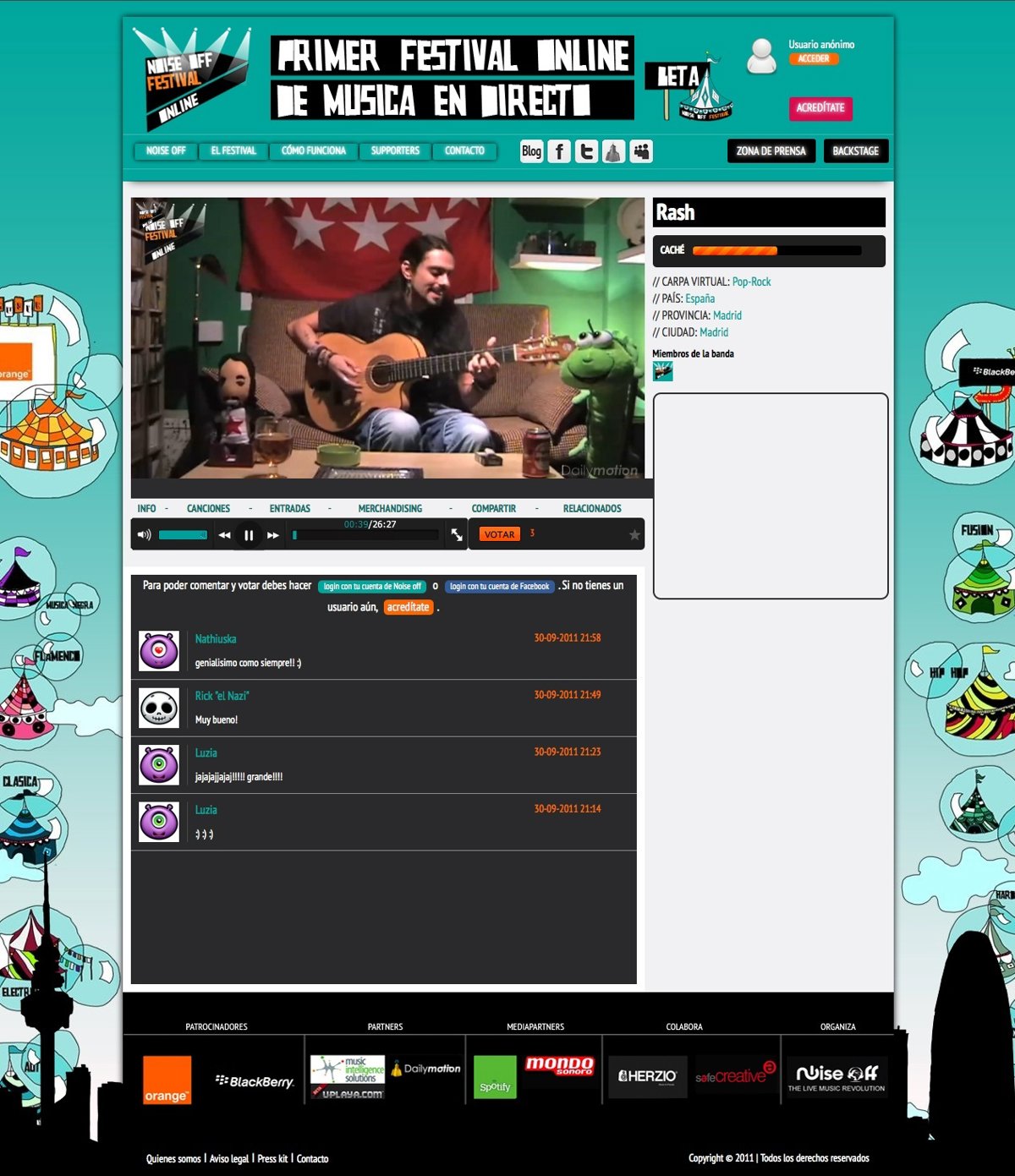 Este festival online, que celebra su primera edición de octubre a febrero de 2012, se presenta como una alternativa para las bandas emergentes y consolidadas que deseen emitir en directo sin restricciones económicas-creativas. La segunda edición de Noise off festival dará comienzo en marzo de 2012.
