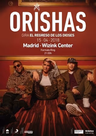 Orishas, el fenómeno cubano del hip hop, actuarán el 15 de abril a las 21:00 horas en el WiZink Center (formato Ring) de Madrid, dentro de su gira El regreso de los dioses, que comenzó en 2017 y que ya ha pasado por ciudades de Estados Unidos, Sudamérica y Europa. Las entradas están disponibles en Ticketmaster y Ticketea.