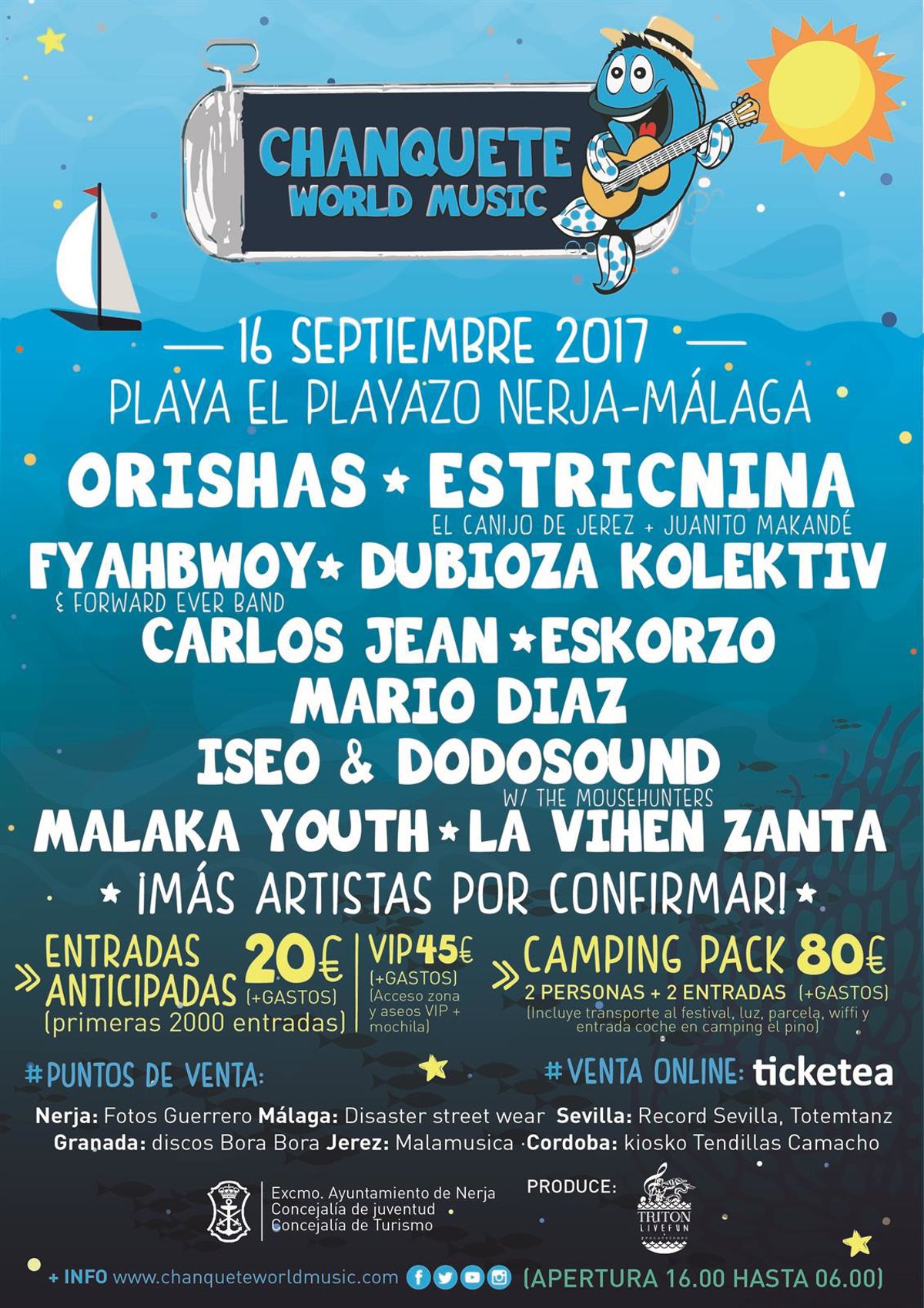 Orishas, Estricnina, Fyahbwoy, Dubioza kolektiv, Carlos Jean, Eskorzo, Mario Díaz, Iseo & Dodosound, Malaka Youth y La Vihen Zanta son los artistas que completan un primer avance de cartel del festival malagueño.