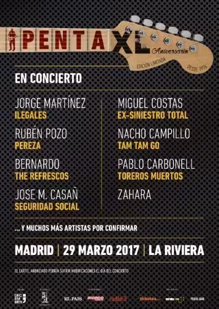 Esta gran fiesta de la música de nuestro país se celebrará el 29 de marzo de 2017 en la sala La Riviera de Madrid y las entradas ya están a la venta a un precio especial de lanzamiento en entradas.com, ticketea.com y en Penta Bar (c/ La Palma, 4).