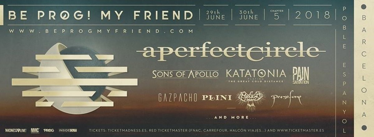 A perfect circle serán el plato fuerte de la edición 2018 del Festival Be Prog! My Friend, que se celebrará los días 29 y 30 de junio en el Poble Espanyol de Barcelona.