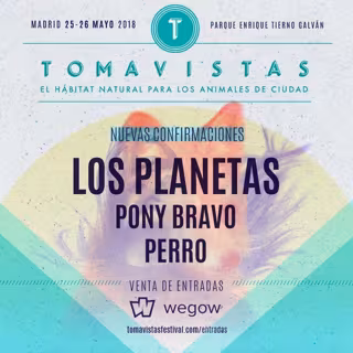 Los Planetas, Pony Bravo y Perro son las nuevas confirmaciones del Festival Tomavistas 2018, que se celebrará en el Parque Enrique Tierno Galván de Madrid los días 25 y 26 de mayo. Los Planetas siguen rodando su álbum Zona Temporalmente Autónoma, mientras que Pony Bravo y Perro presentarán sus nuevos discos que saldrán próximamente.