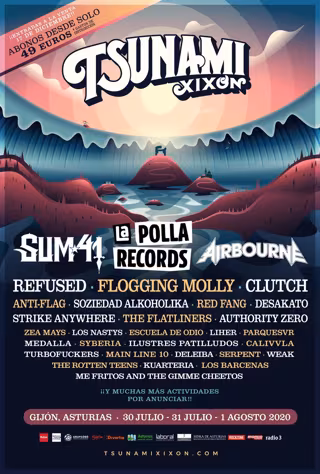 La Polla Records, Sum 41 y Airbourne lideran el cartel del Tsunami Xixon 2020, que se celebrará en la ciudad asturiana del 30 de julio al 1 de agosto.