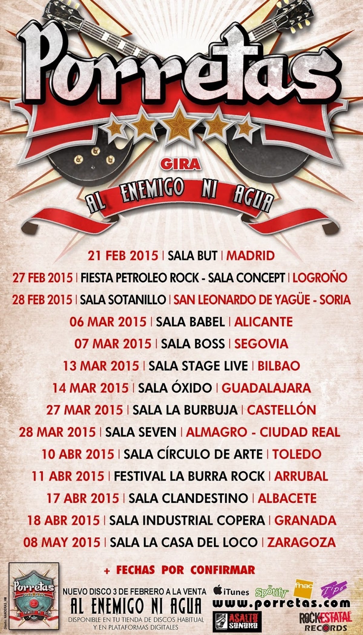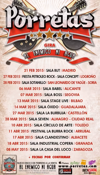Este próximo 3 de febrero sale a la venta el nuevo disco de Porretas Al Enemigo Ni Agua, y el 21 de febrero comienza la gira en la Sala But de Madrid.