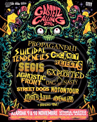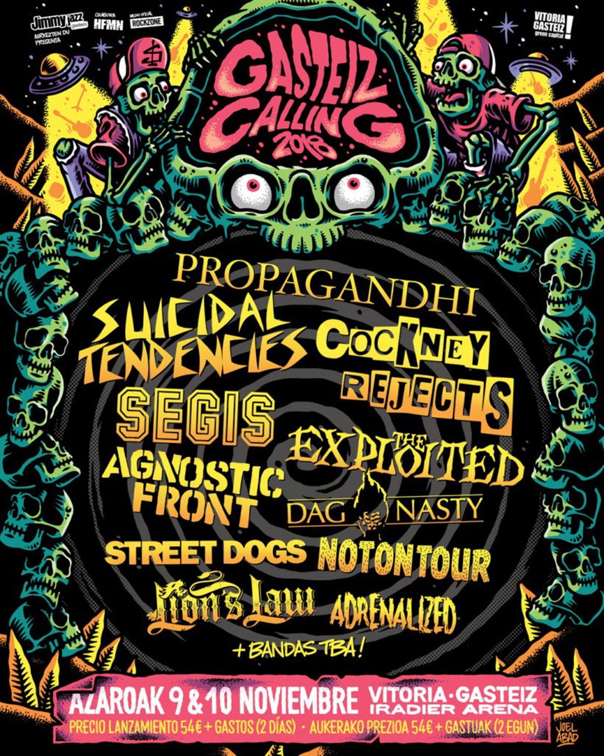 La edición 2018 del festival Gasteiz Calling ha comenzado confirmando la presencia de Propagandhi, Suicidal Tendencies, Cockney Rejects, Segis, The Exploited y Agnostic Front.