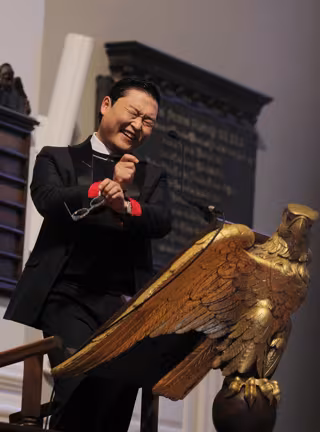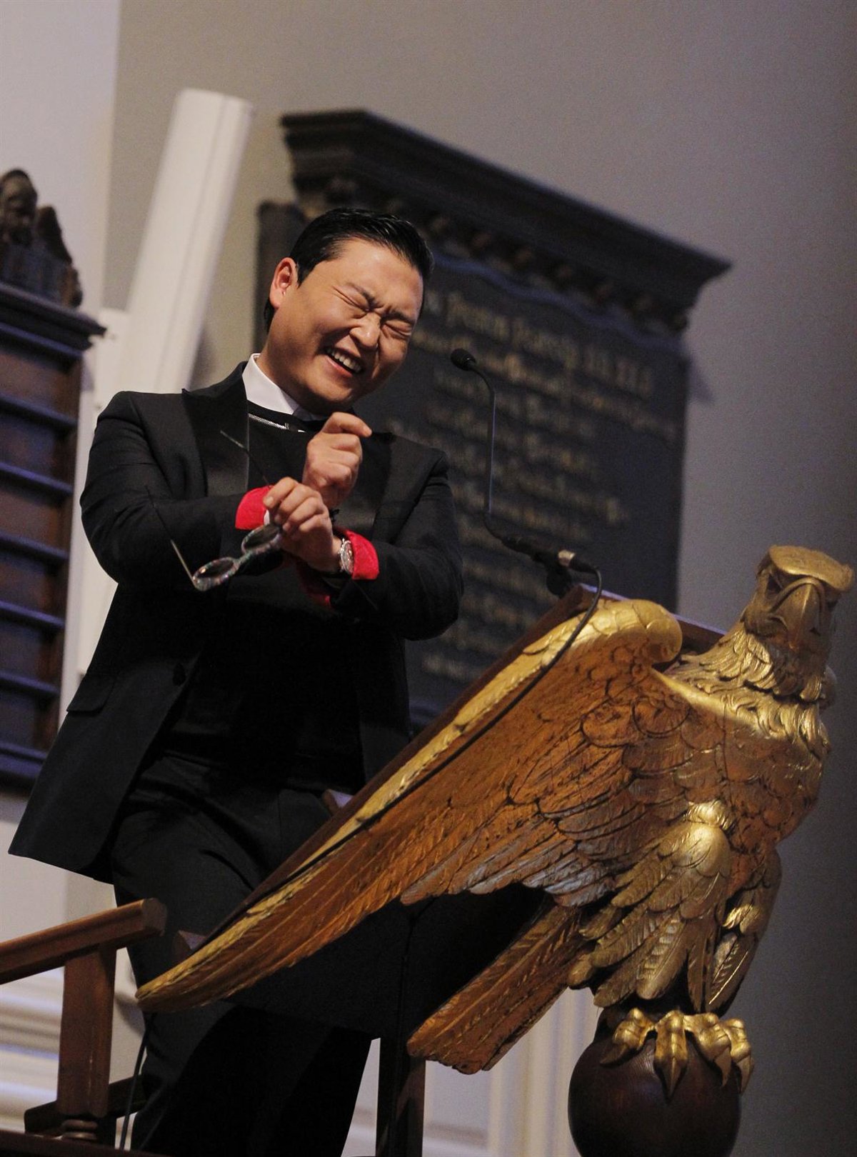 Psy, de 35 años, dijo a la audiencia en la prestigiosa universidad que la música supera las divisiones nacionales. "La música hace que todo el mundo se una. Es algo que va más allá del lenguaje", afirmó. En algunos conciertos, contó, "estoy muy orgulloso, la gente no entiende la letra, ¡pero se les ve tan contentos!"