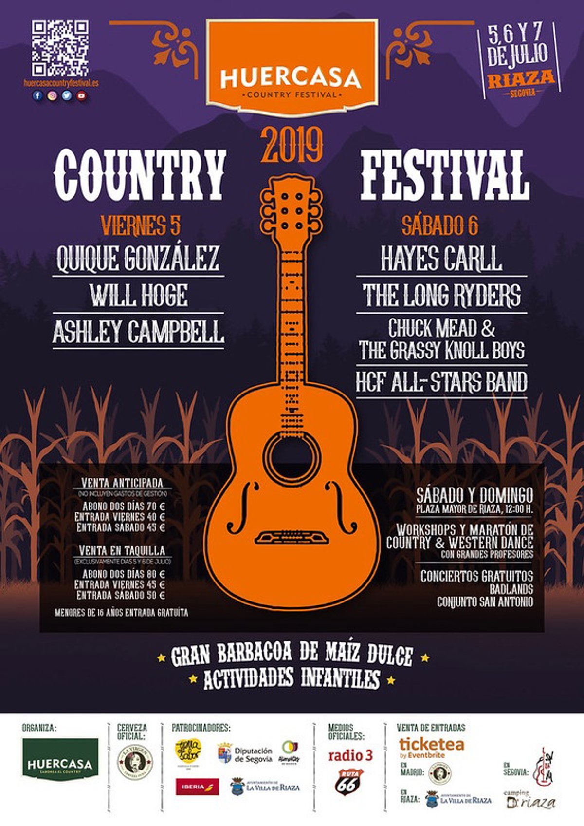 El texano Hayes Carll y el madrileño Quique González serán los cabezas de cartel de la sexta edición del Huercasa Country Festival, que este 2019 se celebrará del 5 al 7 de julio en la localidad segoviana de Riaza.