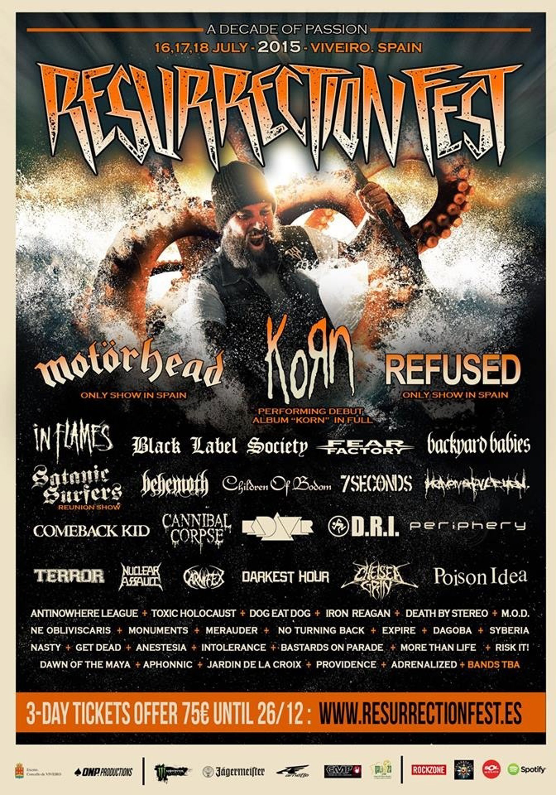 Korn, Refused, Black Label Society, Satanic Surfers, Children of Bodom, Cannibal Corpse, Fear Factory y Backyard Babies son algunas de las potentísimas bandas que se han sumado este miércoles al cartel del Resurrection Fest 2015, que se celebrará del 16 al 18 de julio en Viveiro (Lugo).