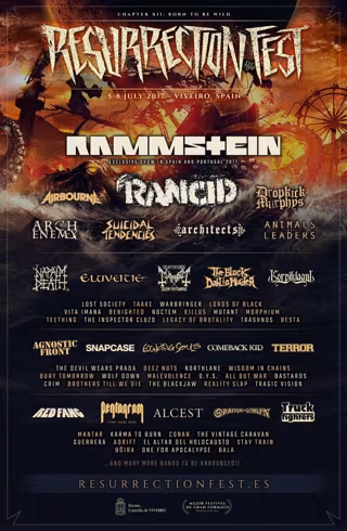 Un total de 63 bandas conforman el primer adelanto de cartel del Resurrection Fest 2017, anunciado hace unas semanas, encabezadas por los ya mencionados Rammstein, o otras grandes bandas como Rancid, Dropkick Murphys, Suicidal Tendencies, Agnostic Front, Comeback Kid, Terror, Snapcase, Deez Nuts o The Bouncing Souls, entre muchas otras.