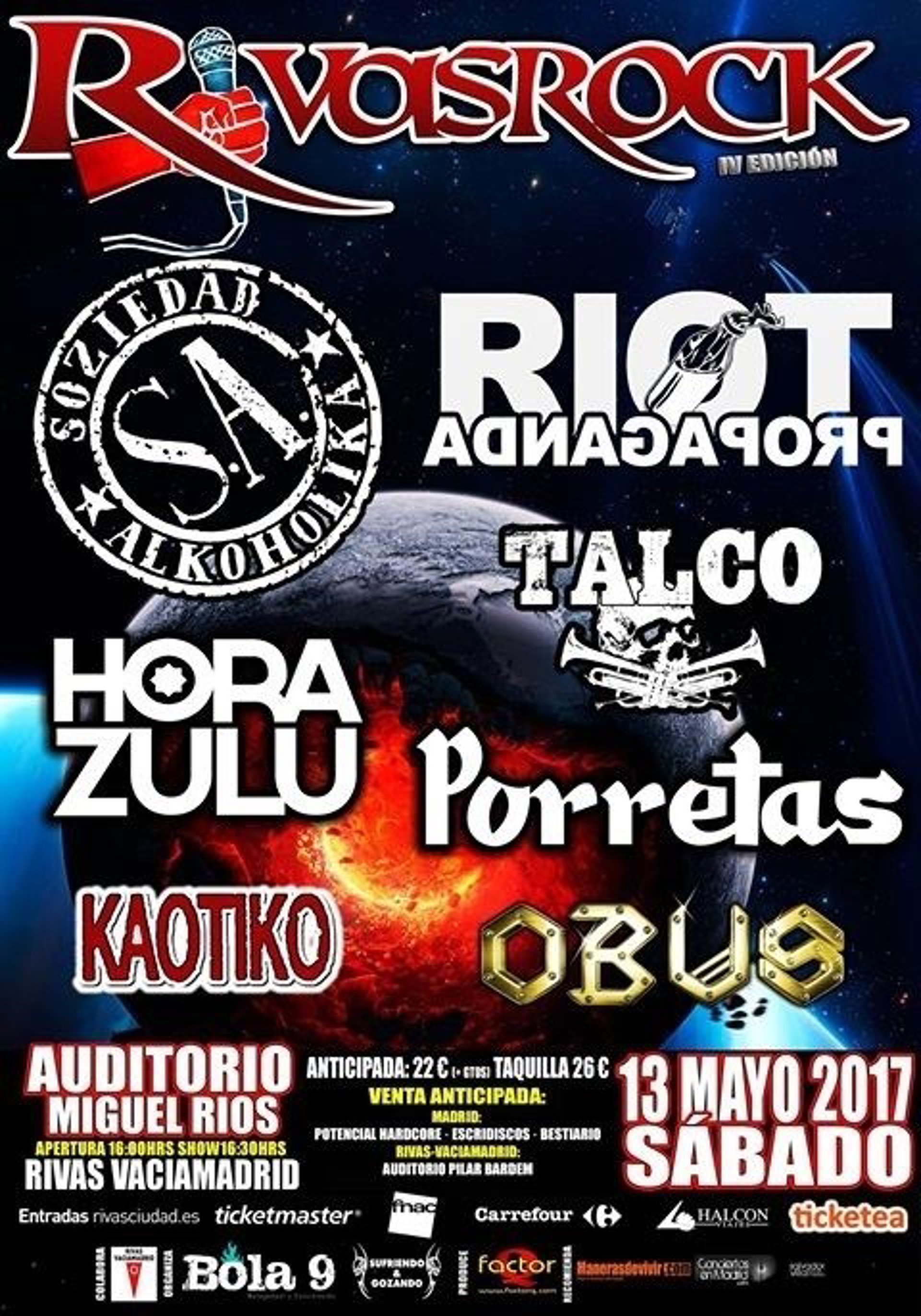 En esta ocasión contará con Obús, Kaotiko, Hora Zulú, Porretas, Talco, Soziedad Alkohólika y Riot Propaganda (Chikos del Maíz + Habeas Corpus).