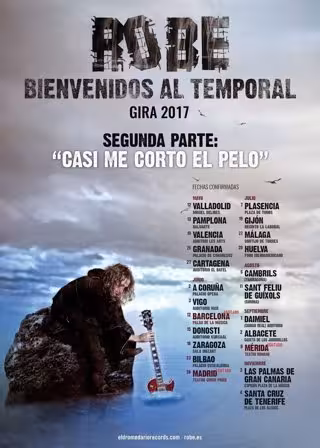 Después de anunciar las fechas y ciudades de Ponte a cubierto, la primera parte de la gira Bienvenidos al temporal, que tendrá lugar en teatros y auditorios, Robe confirma ahora los conciertos del segundo tramo de conciertos para presentar su segundo disco al margen de Extremoduro.