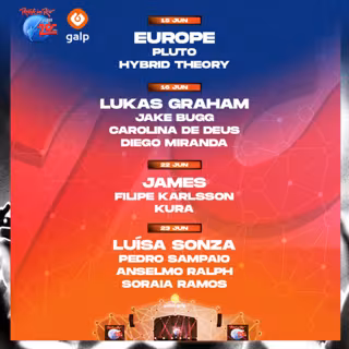 Después, el domingo 16 de junio, este mismo escenario contará con las actuaciones de Carolina de Deus, y el DJ Diego Miranda, a los que se suman los confirmados Lukas Graham y Jake Bugg. El tercer día, el sábado 22 de junio, Filipe Karlsson y el DJ y productor KURA se unen a la banda James.