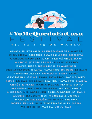 Con motivo de la crisis del coronavirus nace "Yo me quedo en casa", el primer festival musical íntegramente digital que tendrá lugar del 13 al 15 de marzo como complemento a las prescripciones de permanecer en los hogares que están realizando las autoridades sanitarias -todos los detalles sobre artistas y horarios están en www.instagram.com/yomequedoencasafestival-.