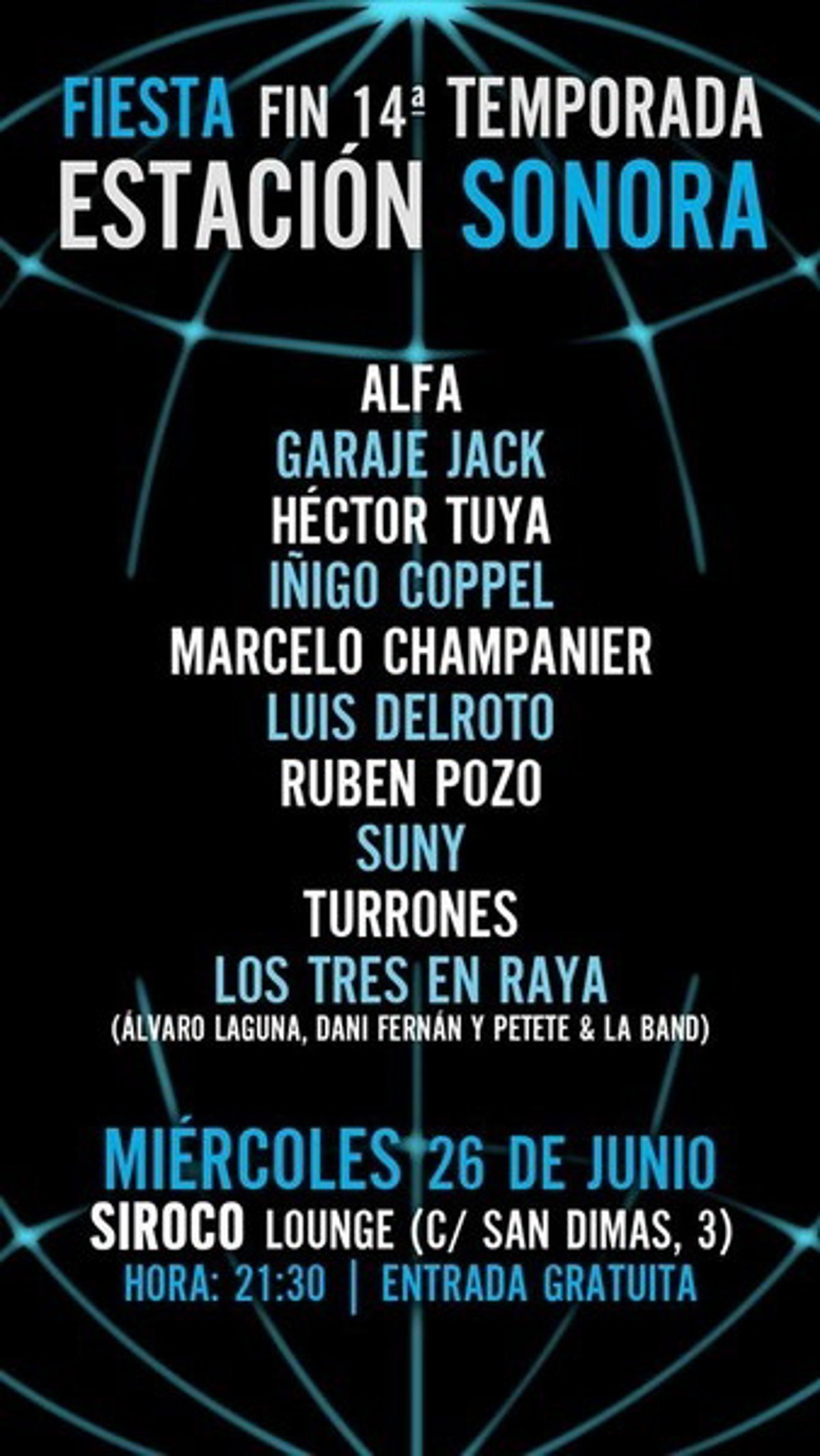 El programa de radio Estación Sonora cierra su decimocuarta temporada con una fiesta-concierto, que tendrá lugar el 26 de junio en la sala Siroco de Madrid.