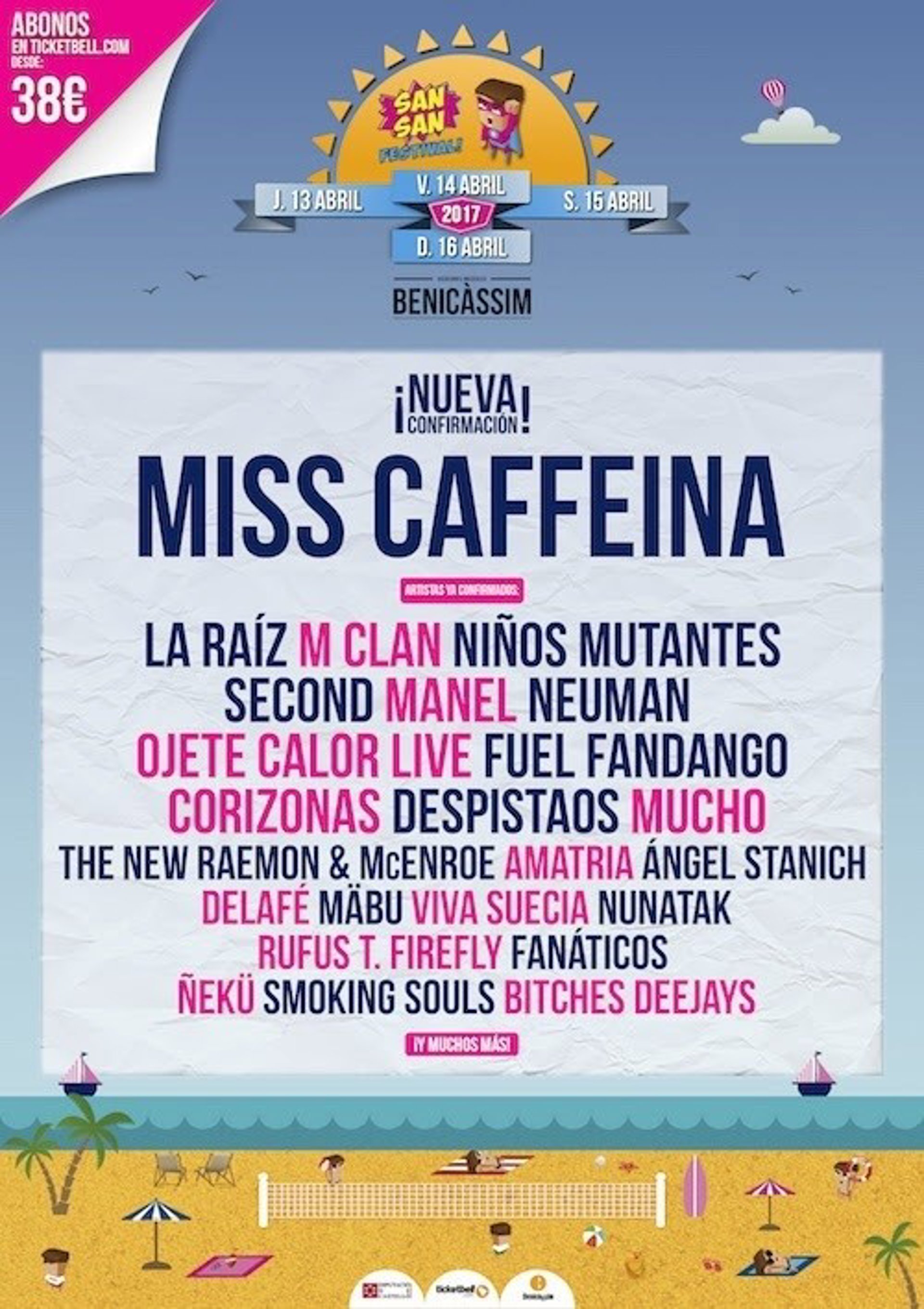 Miss Caffeina confirman su presencia en el SanSan Festival 2017, que se celebrará los días 13, 14, 15 y 16 de abril en el recinto de festivales de Benicàssim (Castellón), coincidiendo con las vacaciones de Semana Santa.