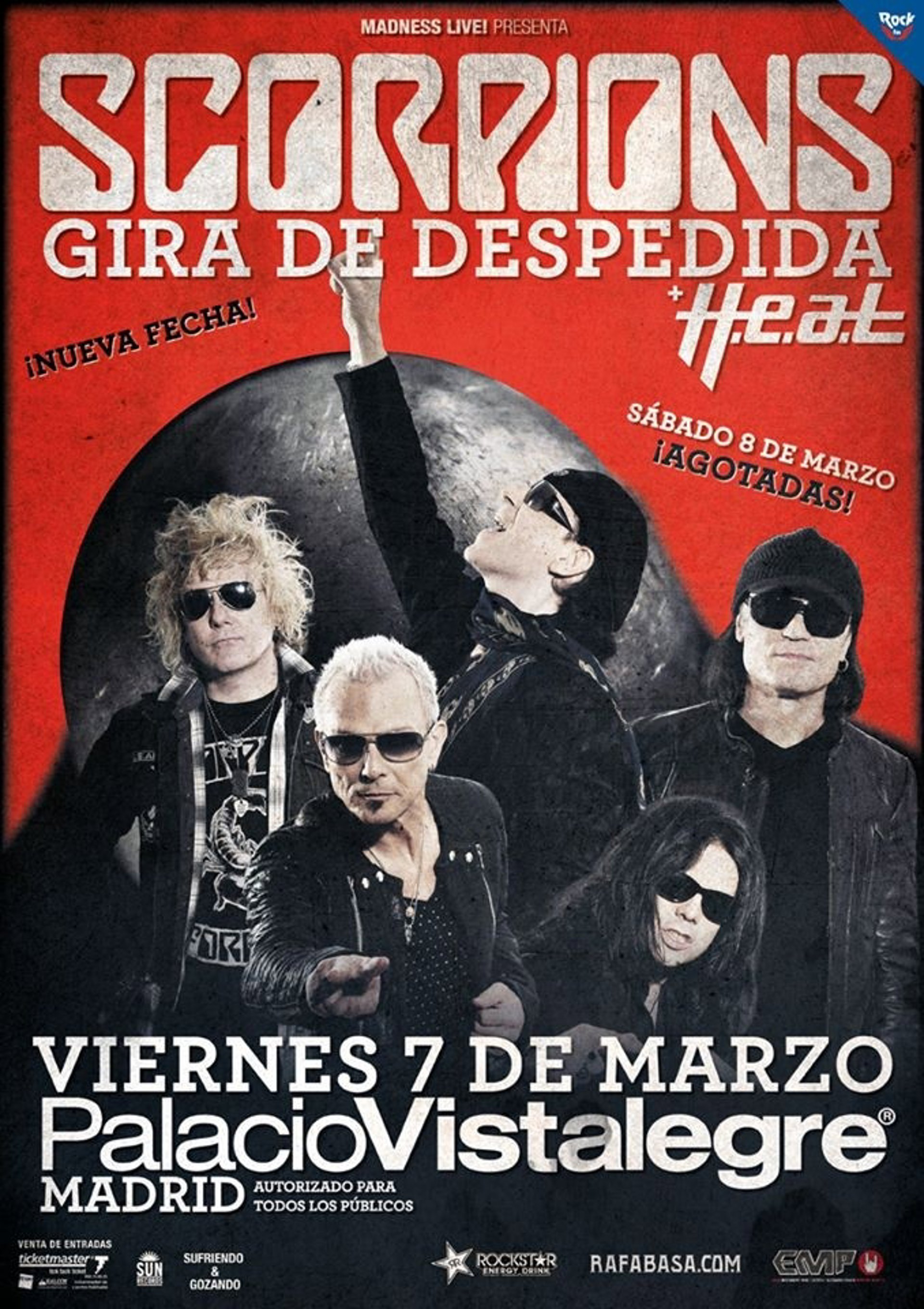 Tras agotar en tiempo récord las entradas para su concierto del sábado 8 de marzo, la banda alemana Scorpions repetirá la noche antes en el Palacio Vistalegre de Madrid, tal y como informa la promotora Madness Live.