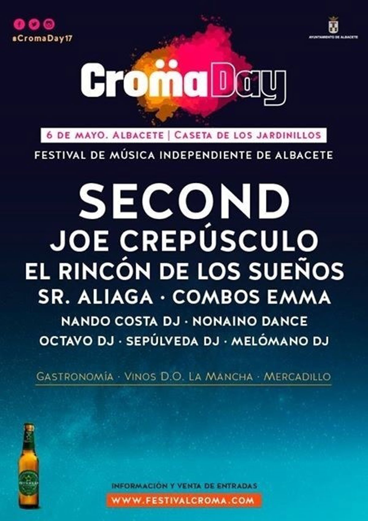 El Croma Day, festival de música independiente de Albacete que se celebrará de nuevo en el mes de mayo, ha completado su cartel con artistas como Second, Joe Crespúsculo o los paisanos El Rincón, en una cita que según el concejal de Cultura del Ayuntamiento de Albacete, Manuel Serrano, supone un "maridaje perfecto" entre música y gastronomía.