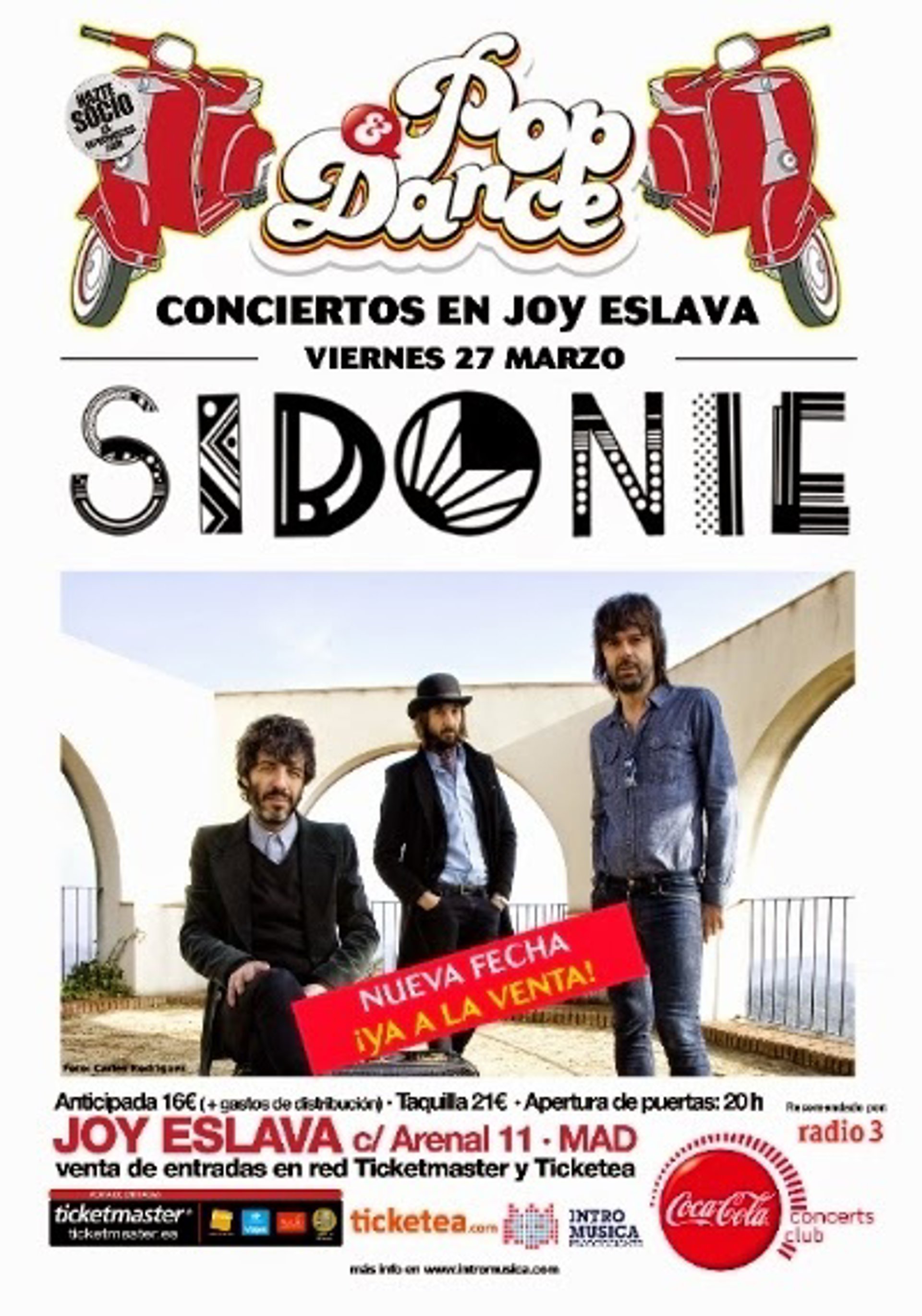 Después de su sold out en Madrid para el concierto del 12 de diciembre en la Joy Eslava, la banda barcelonesa Sidonie decide repetir en el ciclo Pop&Dance y volver el 27 de marzo de 2015 a la misma sala para ofrecer otro recital.