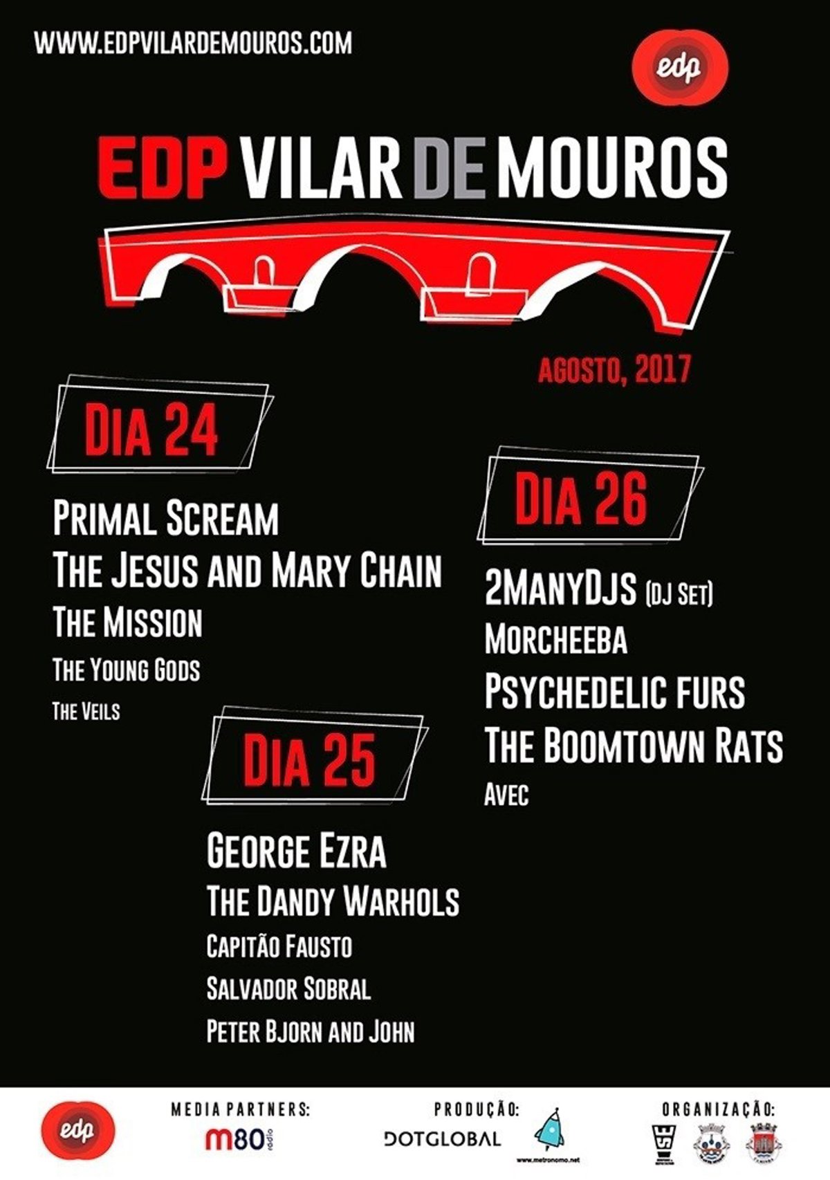 El Festival EDP Vilar de Mouros se celebrará este año los días 24, 25 y 26 de agosto en la aldea portuguesa de Vilar de Mouros. Una vez más, la organización apuesta por la transversalidad de estilos musicales y de generaciones.