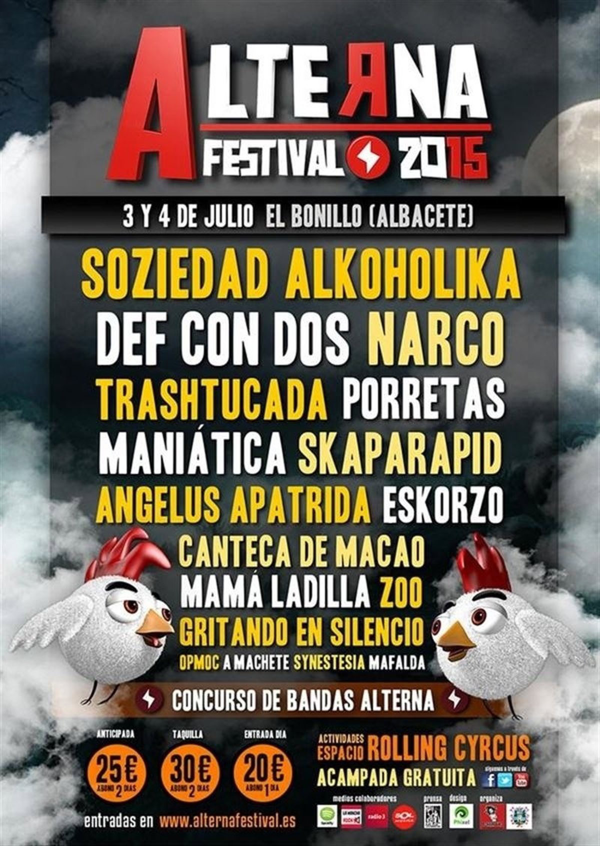 El Alterna Festival de este año tendrá lugar los días 3 y 4 de julio en El Bonillo (Albacete), con las actuaciones en directo de Narco, Def Con Dos, Eskorzo y Angelus Apatrida.