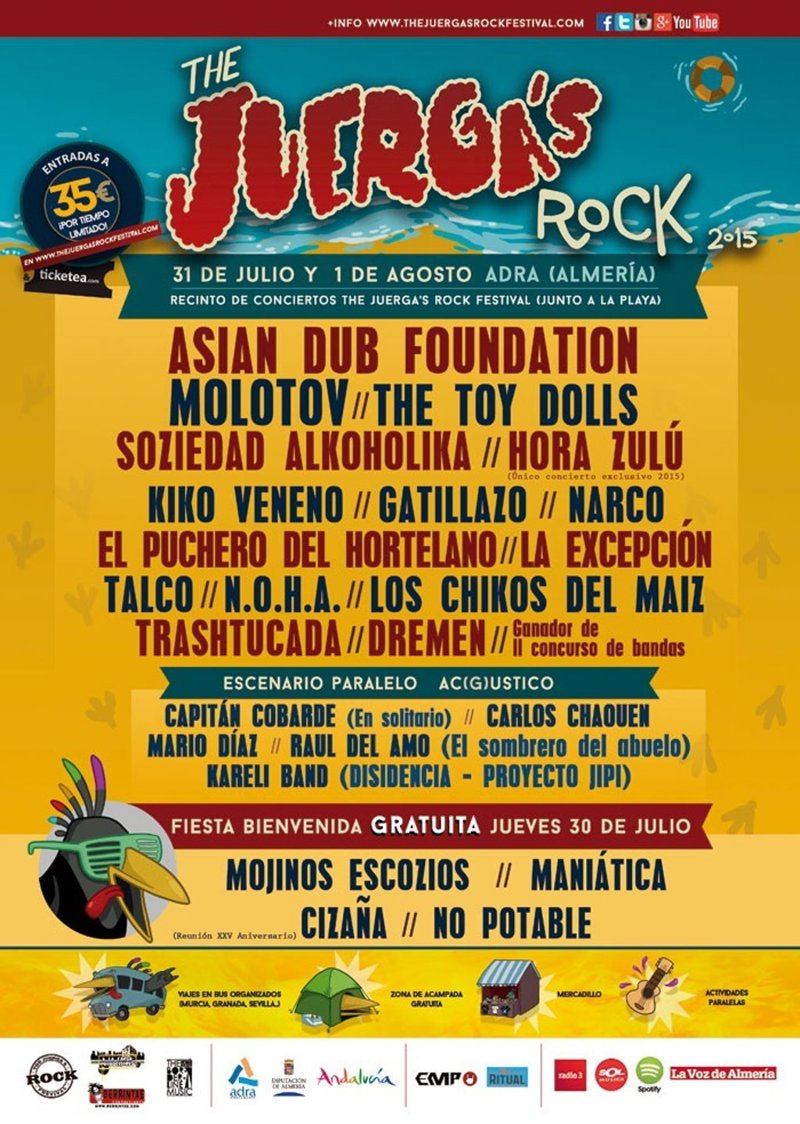 Así las cosas, por la localidad almeriense pasarán Asian Dub Foundation, Molotov, The Toy Dolls, Soziedad Alkoholika, Hora Zulú, Kiko Veneno, Gatillazo, Narco, El Puchero del Hortelano, Los Chikos del Maíz y La Excepción.
