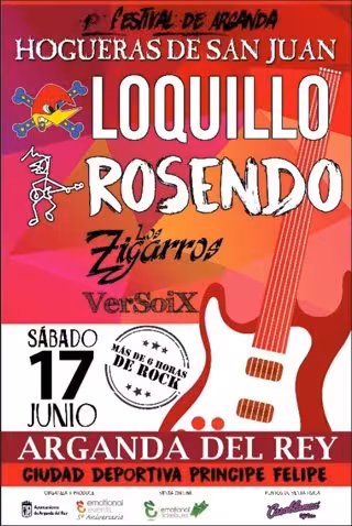 El complejo de la Ciudad Deportiva Príncipe Felipe de Arganda del Rey (Madrid) acoge este sábado 17 de junio a partir de las 19 horas la primera edición del Festival Hogueras de San Juan, con actuaciones de Loquillo, Rosendo, Los Zigarros y Versoix.