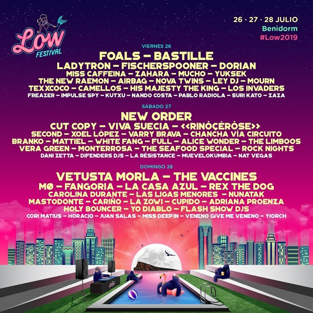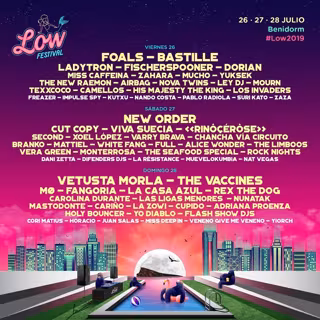 El viernes 26, recordamos, tocarán Foals, Bastille, Ladytron, Fischerspooner, Dorian, Miss Caffeina, Zahara, Mucho, Yuksek, The New Raemon, Airbag, Texxcoco y muchos más.