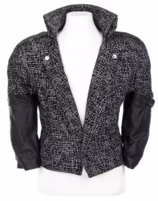 La chaqueta de cuello de pico, negra con una trama blanca y mangas de cuero desde el codo hacia el puño, saldrá a la venta en una subasta de Profiles in History entre el 29 de junio y el 1 de julio en Calabasas, California.
