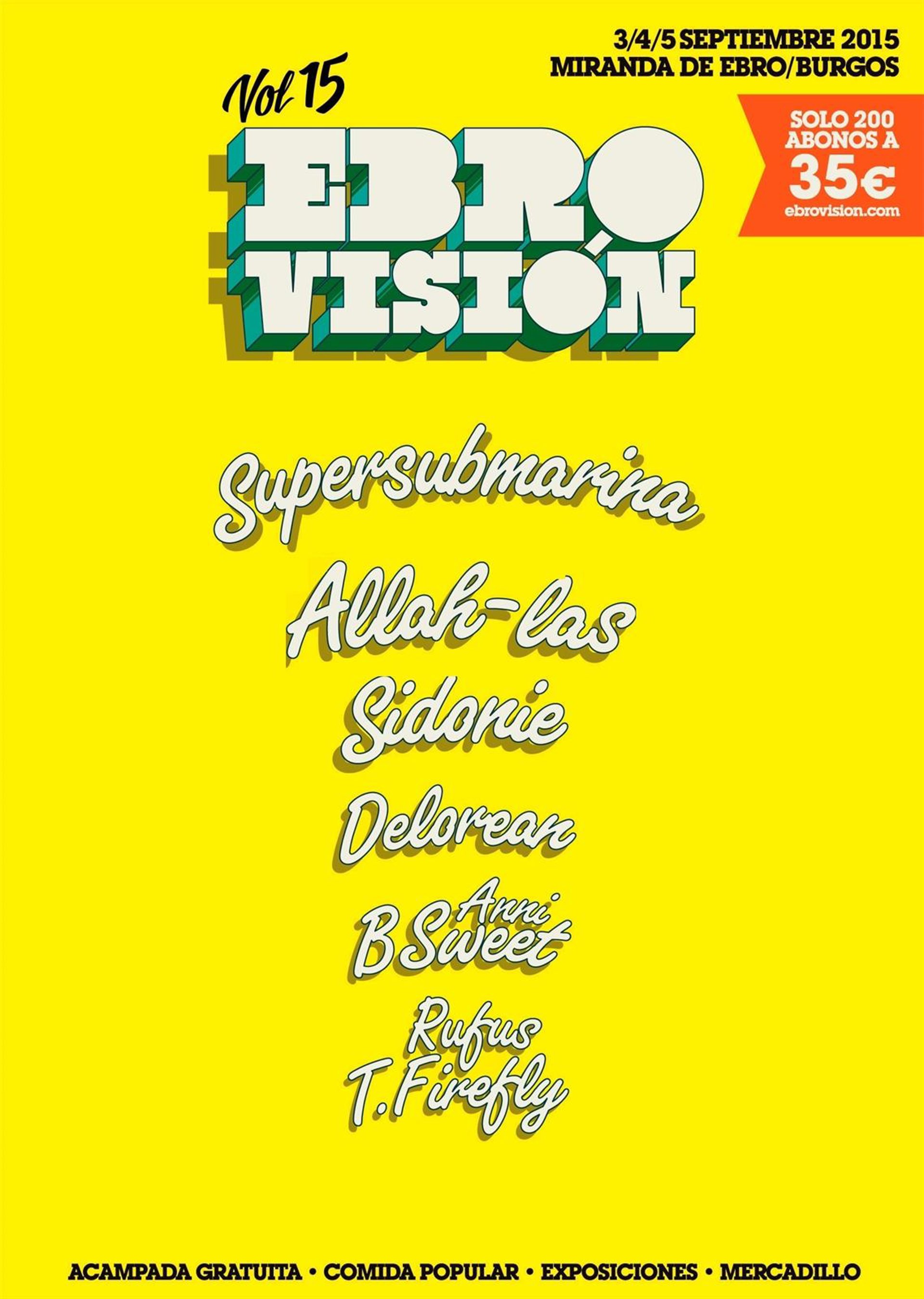 La localidad burgalesa de Miranda de Ebro acogerá los días 3, 4 y 5 de septiembre el festival 'Ebrovisión', organizado por Asociación Amigos de Rafael Izquierdo que celebra este año su decimoquinto aniversario y que contará con grupos como Supersubmarina, Allah-Las, Sidonie, Delorean, informaron a Europa Press fuentes de la organización.
